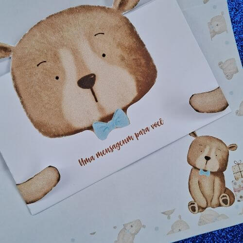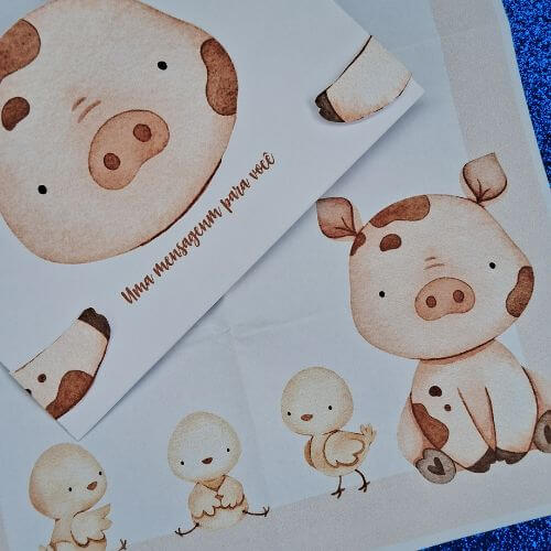 Inclui: 5 modelos de papéis de carta e 5 envelopes em forma de animais fofos combinando com a estampa da carta.