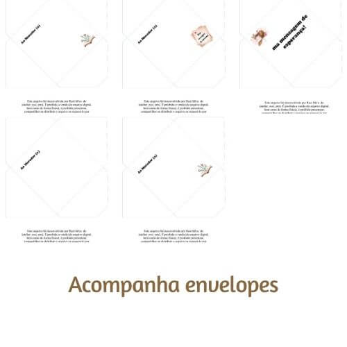 Inclui: 5 modelos de papéis de carta e 5 envelopes combinando com a estampa da carta.